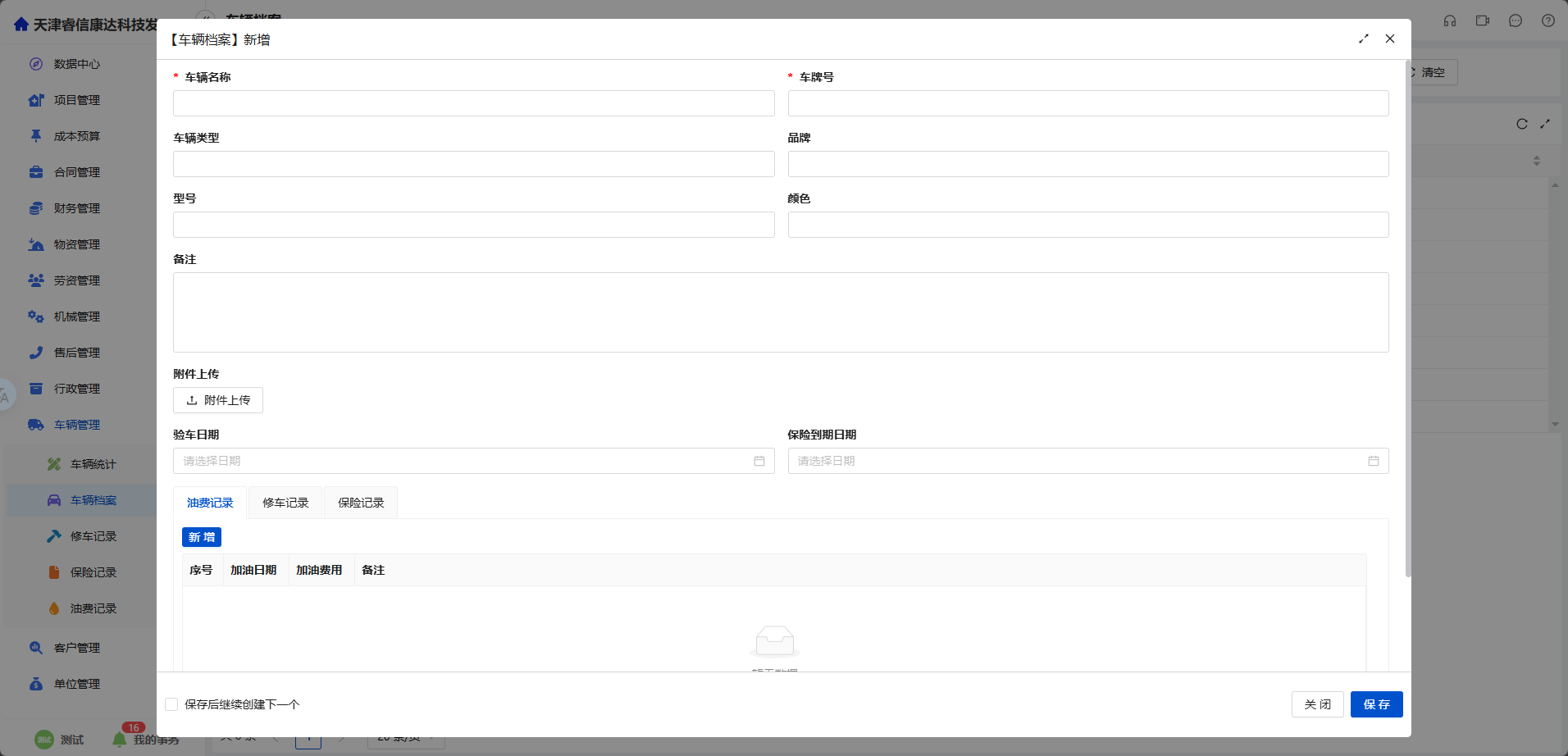 - 附件上传归档:行驶证、保险单等证件支持上传至车辆档案,查档即可调阅,告别文件翻箱倒柜