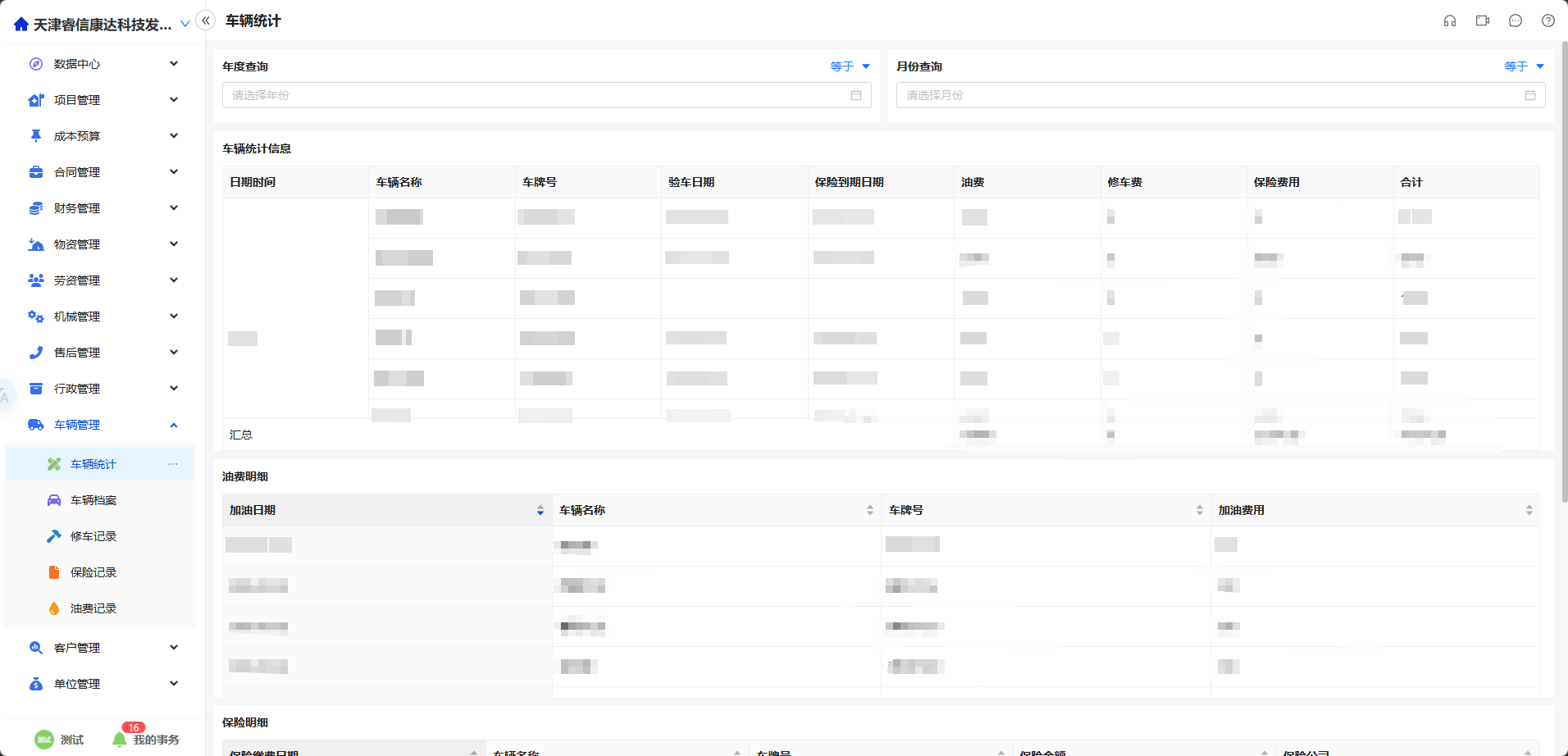 通过【车辆统计】汇总看板,管理层可按年度或月份灵活筛选,实时查看各车辆的综合费用情况: